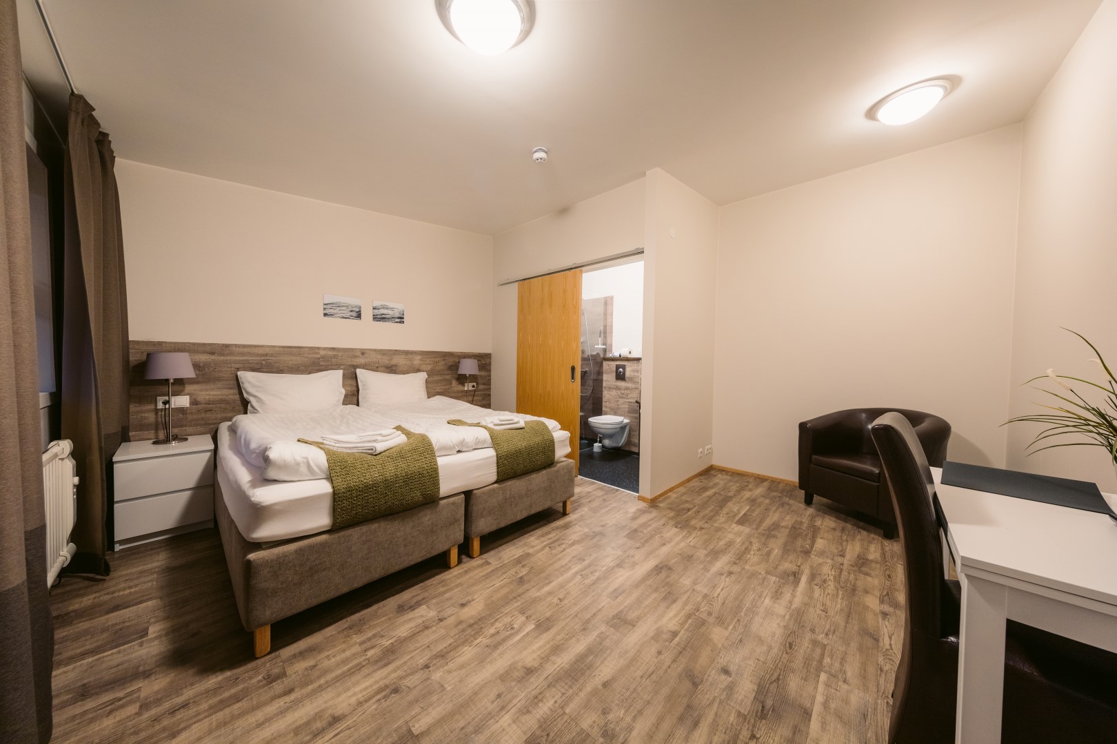 18 bright and comfortable rooms, with a selection of single, double / twin and family options. All rooms have a private bathroom, private entrance, and access to a hot tub.