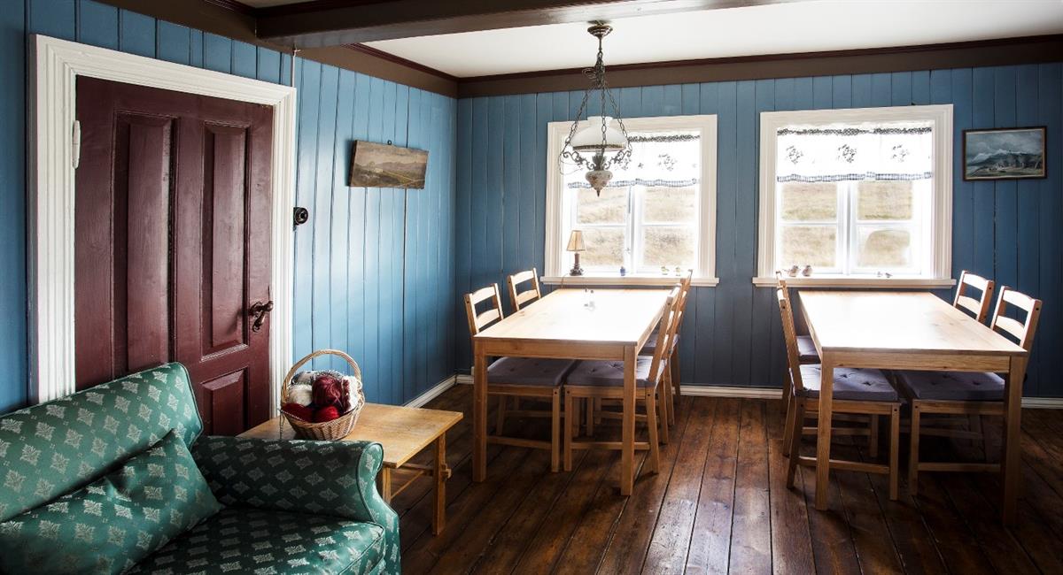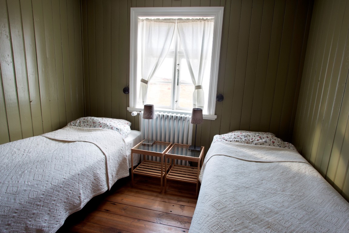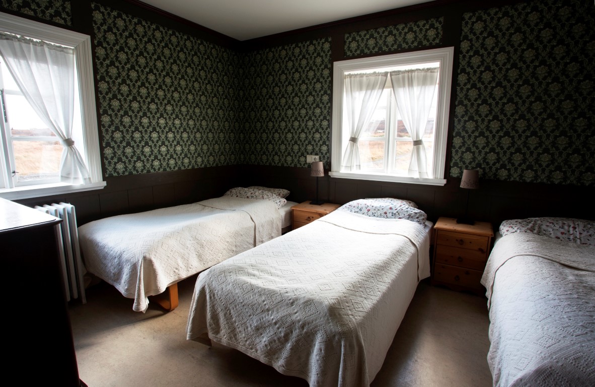 A former residential house, built in 1894, and used to belong to another farm. The house was later moved closer to the English houses that are about 1 km away (0.6 mi). Lambalækur was completely renovated in 2004. The ground floor has a hall, corridor, kitchen, sitting room, laundry room and storage, as well as a double room and a family room that share a bathroom. More rooms are on the upper floor; one family room and two double rooms that share a bathroom.