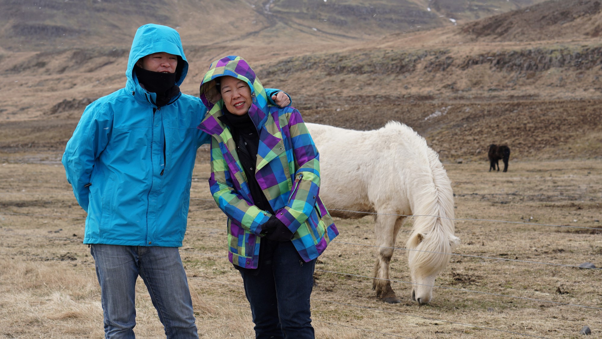 Mother, son, and an Icelandic horse