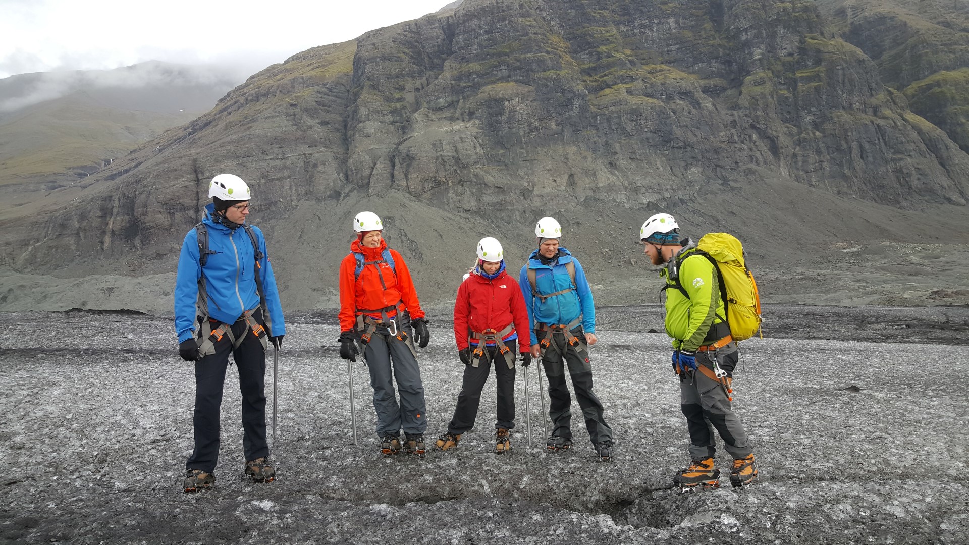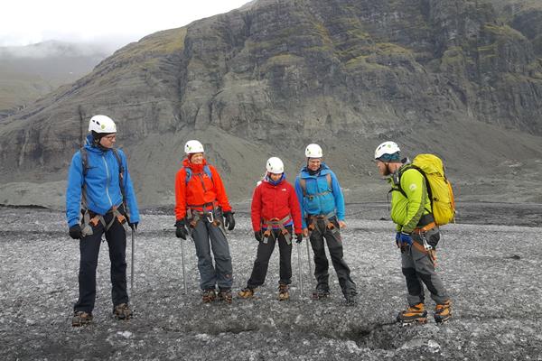 • Crampons, harness, helmet and ice axe