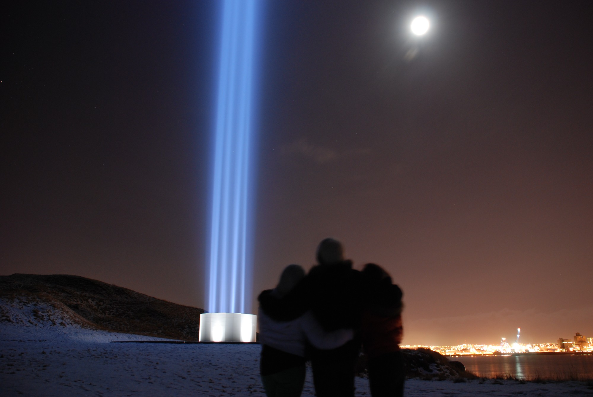 The tower shines from one hour after sunset until midnight between October 9 and December 8 (the dates marking John Lennon's birth and death). It is also illuminated from the Winter Solstice through New Year's Day, on Yoko Ono’s birthday, and during the Spring Equinox week. The ever-changing weather in Iceland influences the tower’s brightness and intensity, adding a dynamic element to its display.