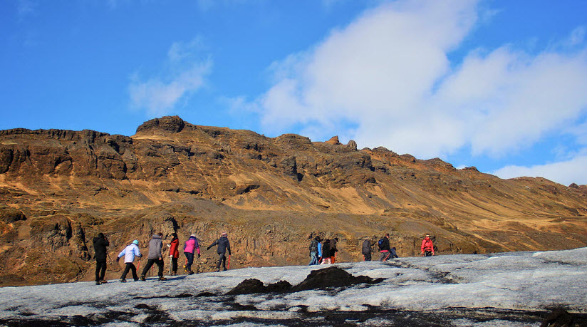 Less than two hours' drive from Reykjavík lies the Eyjafjallajökull glacier, and just a bit further along, the Sólheimajökull glacier tongue stretches from Mýrdalsjökull—Iceland’s fourth largest glacier. A glacier hike offers an exceptional opportunity to immerse oneself in the dramatic Icelandic landscape. Participants enjoy a gentle walk on the glacier, equipped with crampons, as they ascend onto the ice field where a captivating world of ice sculptures, ridges, and deep crevasses awaits exploration. Along the way, guides share insights into the formation and future of these disappearing giants. All necessary glacier equipment is provided, along with instruction on its use to ensure a safe and enjoyable experience. On the return journey, the tour includes stops at two of Iceland’s most iconic waterfalls—Skógafoss and Seljalandsfoss—adding even more unforgettable scenery to the day. Available all year.