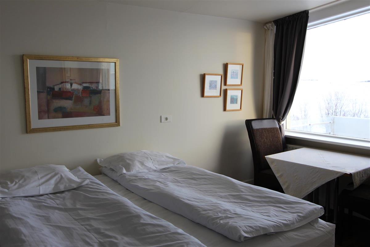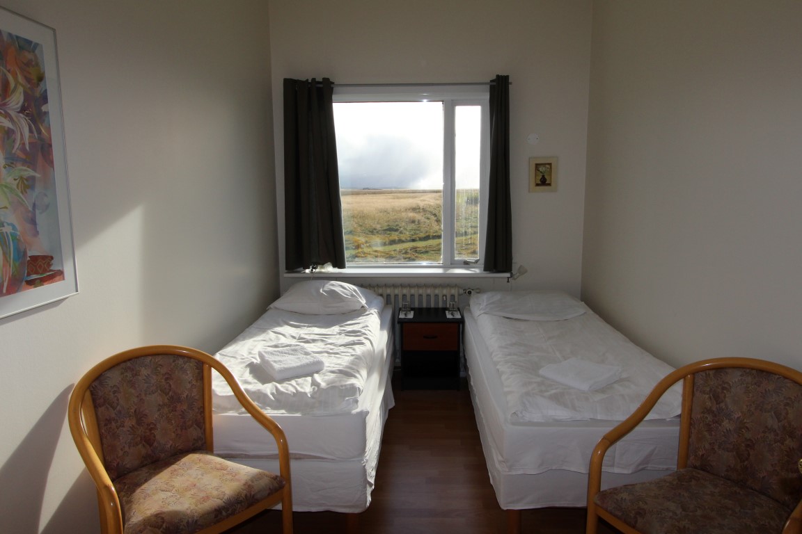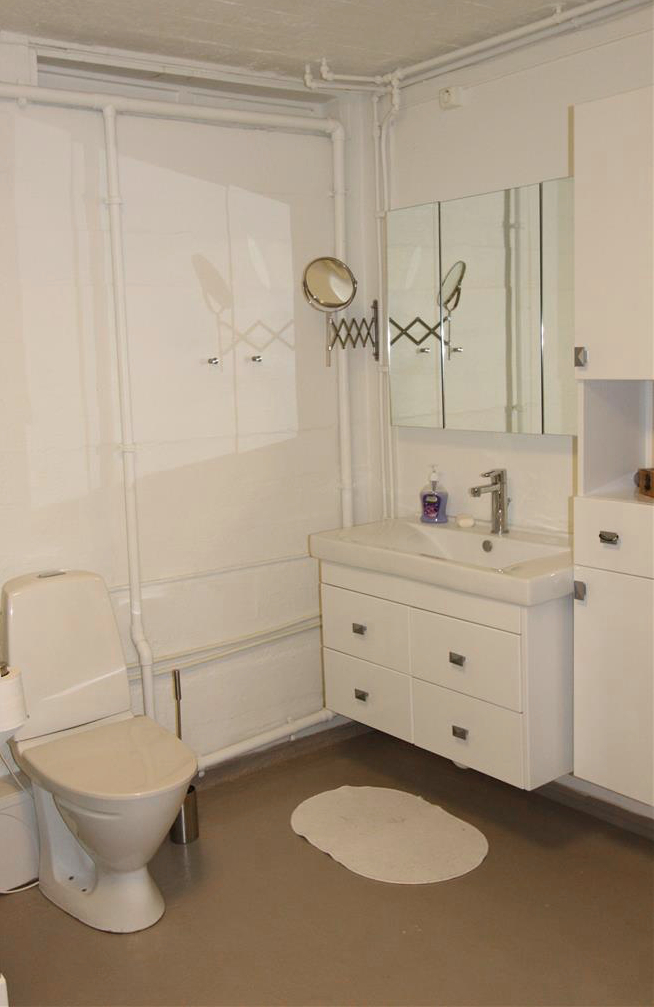 10x2 manna herbergi með sameiginlegu baði. Á efstu hæð eru 8 herbergi, sem deila 2 snyrtingum (2 salerni, 2 vaskar og 1 sturta), og á miðhæð eru 2 herbergi og snyrting með sturtu og baðkari. Á miðhæðinni er matsalur ásamt björtum sólskála. Rúmgóð verönd fyrir utan sólskálann.