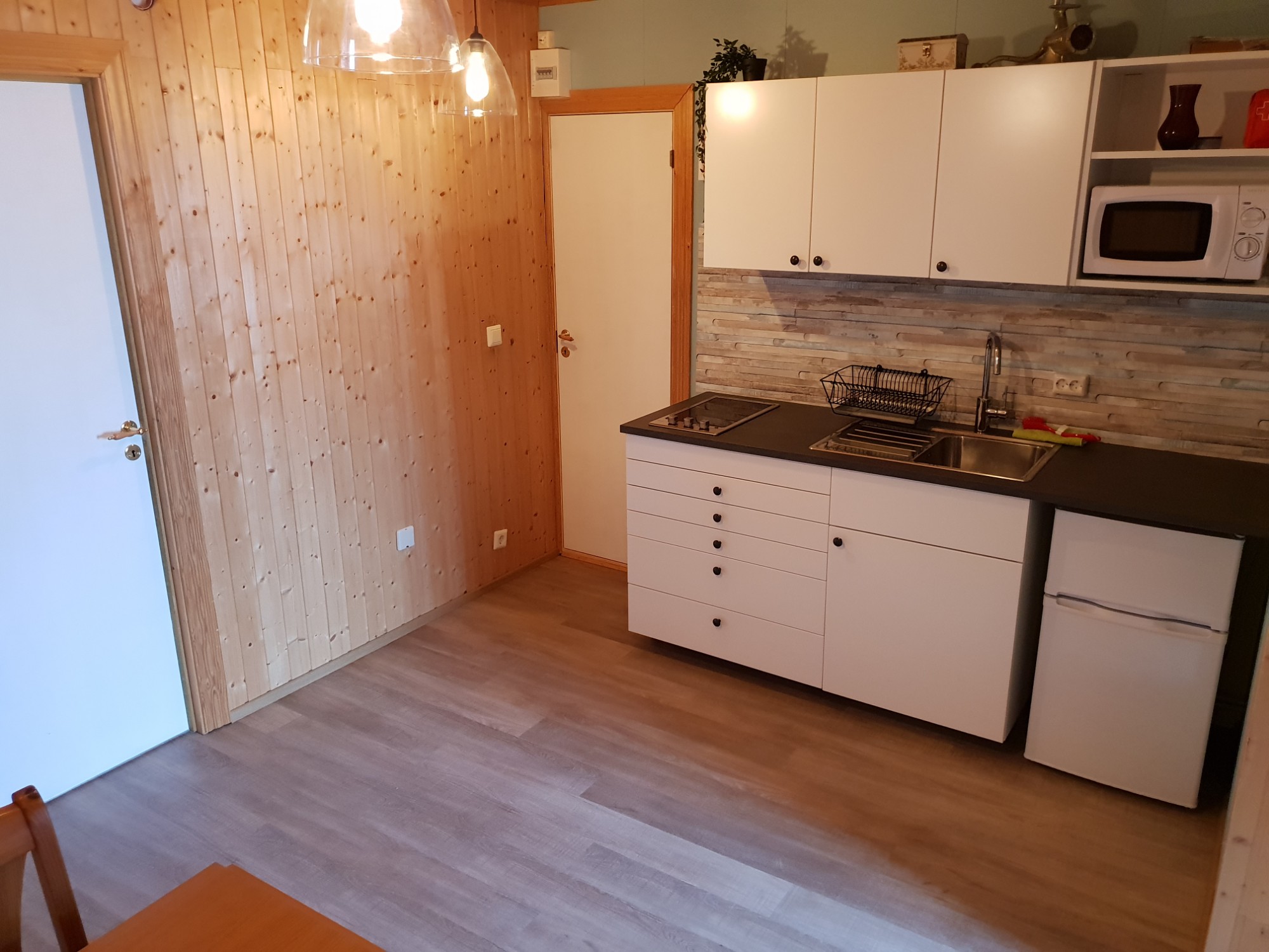 - Íbúð 1 (3 svefnherbergi): Stofa, eldhús, baðherbergi og 3 svefnherbergi; herbergi með hjónarúmi, herbergi með 2 stökum rúmum og herbergi með koju (ein og hálf breidd í neðri og ein breidd í efri koju).