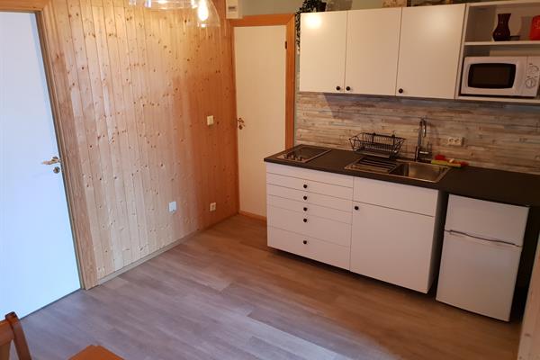 - Íbúð 2 (2 svefnherbergi): Eldhús með setukrók, baðherbergi, stofa með tvíbreiðum svefnsófa og einbreiðu rúmi og 2 svefnherbergi; herbergi með 2 stökum rúmum og herbergi með koju (ein og hálf breidd í neðri og ein breidd í efri koju).