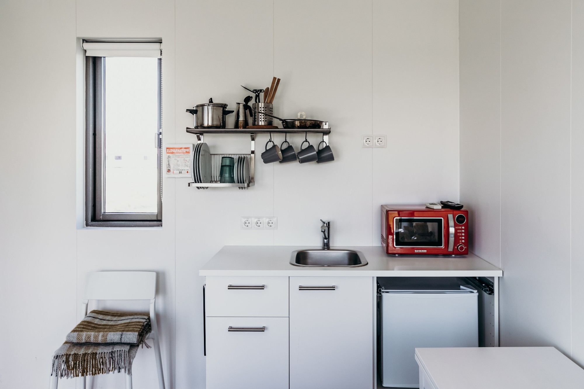 - 2ja – 4ra manna smáhýsi (37 m2) með einu svefnherbergi með rúmum og svefnsófa í stofunni.