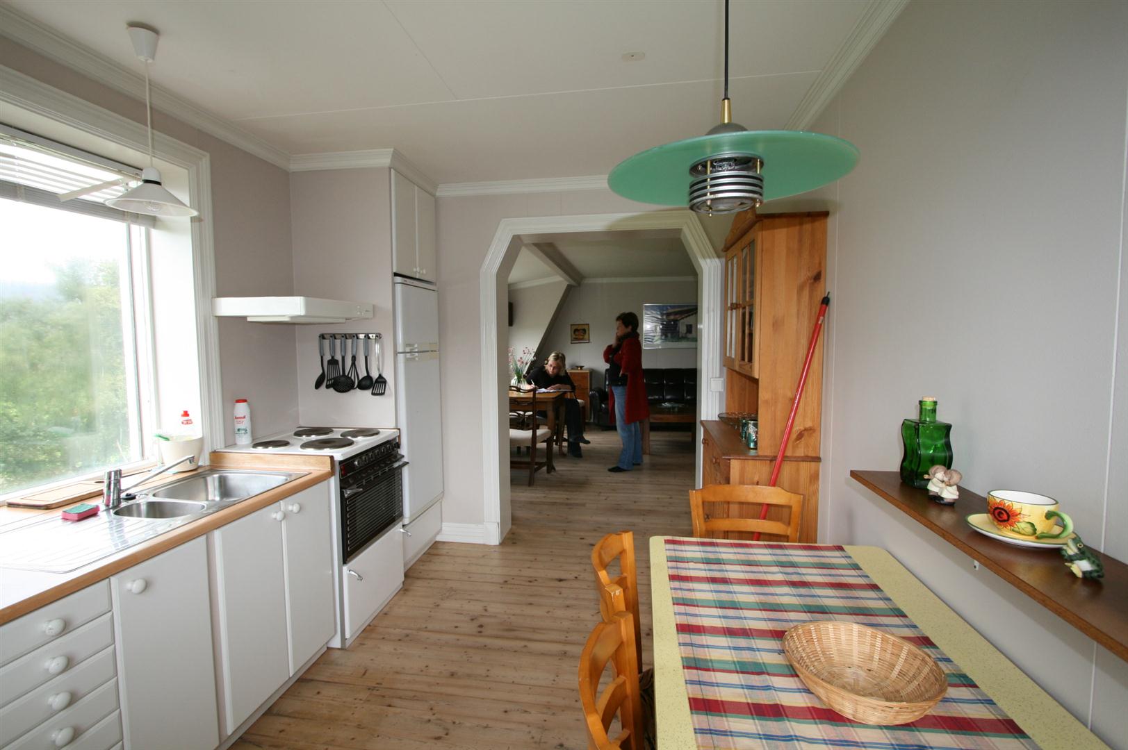 Í íbúðarhúsinu á bænum eru tvær íbúðir. Á fyrstu hæð er íbúð fyrir 7 manns í tveimur svefnherbergjum; í öðru svefnherberginu eru þrjú rúm og í hinu er eitt tvíbreitt rúm og koja (140x200 cm og 90x200 cm). Setustofa, eldhús og baðherbergi. Í íbúðinni á efri hæð, sem er björt og rúmgóð með útsýni yfir skóginn, eru 2 svefnherbergi fyrir 4, tvíbreitt rúm í öðru og tvö rúm í hinu. Einnig er svefnsóffi í setustofunni.