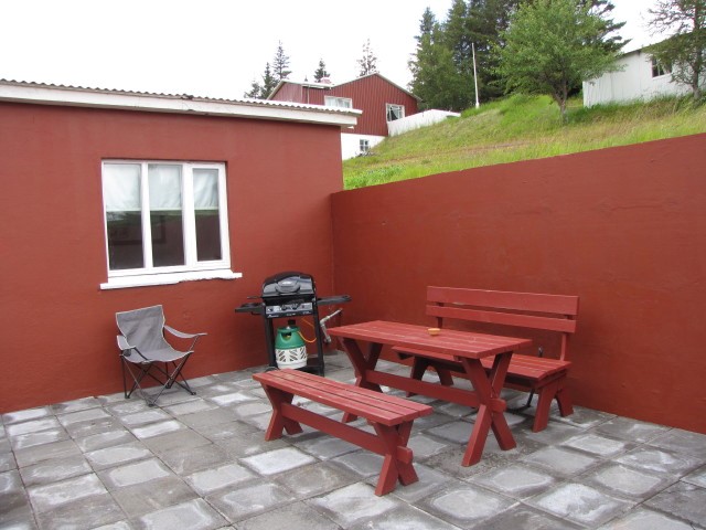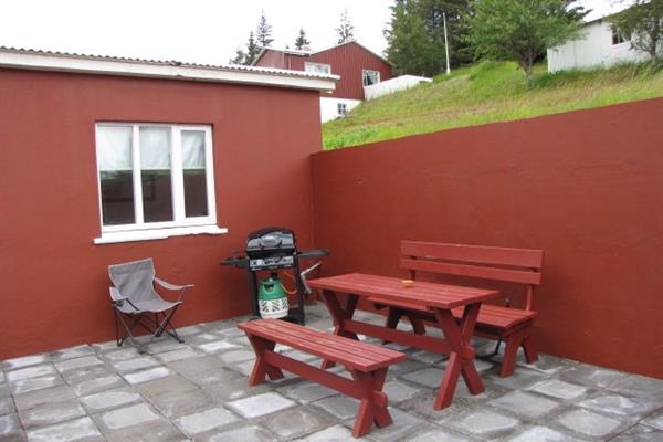 Vel búið og notalegt sérhús á bænum, spölkorn frá íbúðarhúsi ábúenda á jörðinni. Í húsinu geta 5 manns sofið í 3 svefnherbergjum og að auki er svefnsófi í setustofu þar sem 2 geta sofið. Hægt að fá barnarúm og barnastól án endurgjalds. Gott eldhús og tvö baðherbergi eru í húsinu. Í stofu er sjónvarp og DVD-spilari. Stór verönd með grilli og heitum potti.
